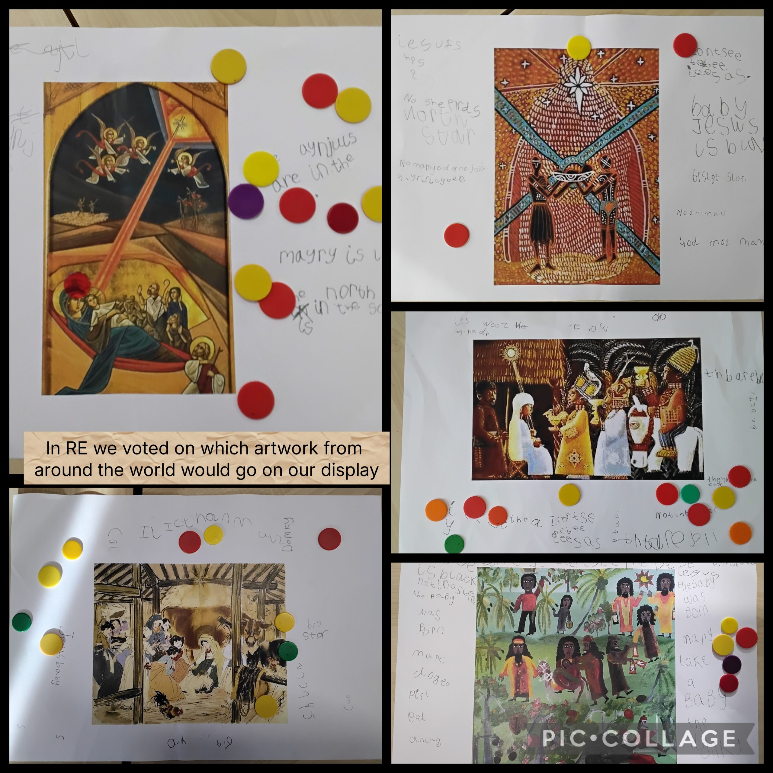 During Parliament week, in our RE lesson we each voted on which artwork from around the world we liked the best. The most popular artwork went up on our display.