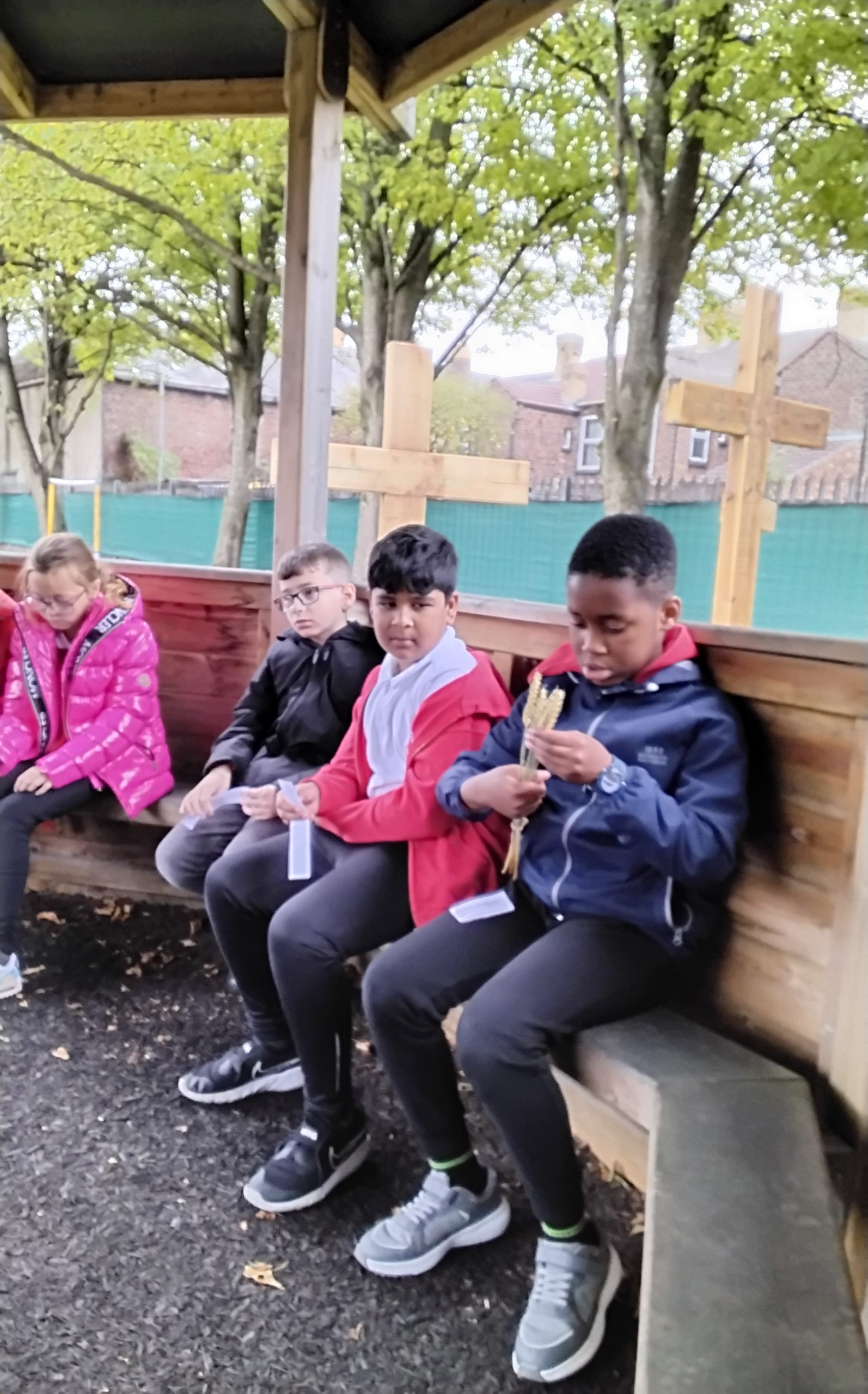 353Year 5 led a beautiful remembrance prayer and liturgy. This included a visit from friend of St Clare’s, Pipe Major James Axon who performed a wonderful lament (Flowers of the Forest).